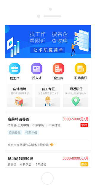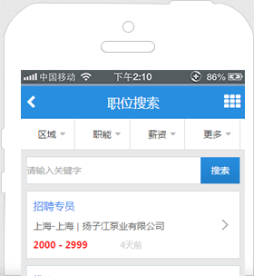隨時隨地搜索工作,輕輕松松應聘職位,工作前途一手掌握。